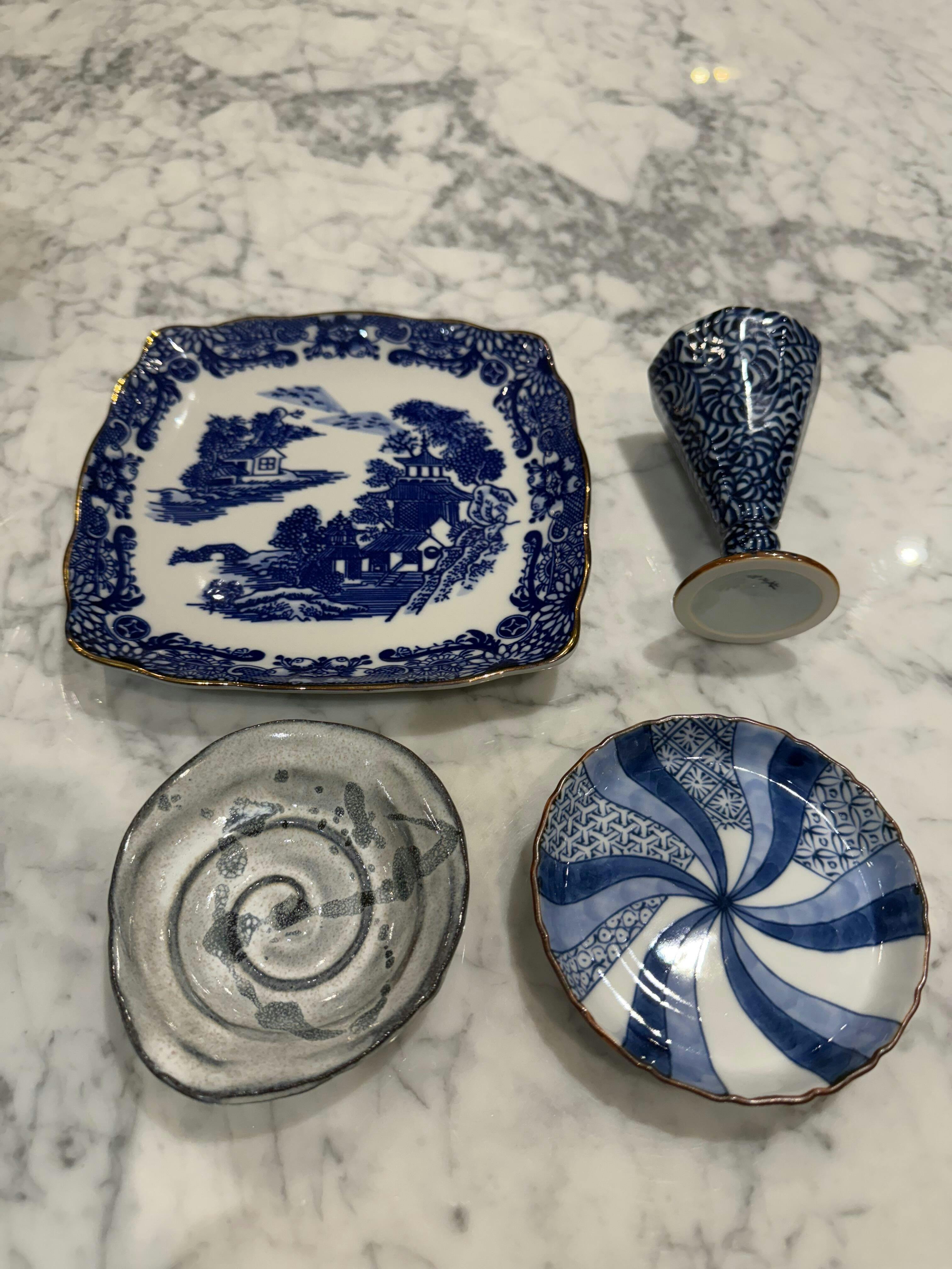 I was looking forward to receiving these swirly sauce plates but I am left very disappointed. The color is nothing like the blue and white you see in the pictures on this site. In actuality, it’s a dull bluish gray and white. They are also feather light and feel very, very cheap. I will try and return them if possible just on principle. I took a picture with other objects that are true blue and white for comparison and this sauce plate looks more like my gray and white marble top than blue and white. For the price, the quality is actually shocking.